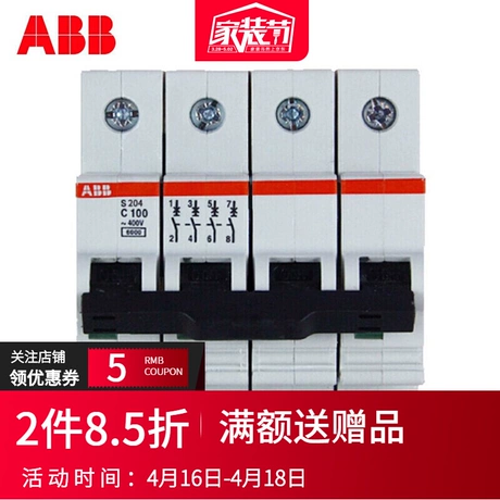 ABB circuit breaker 380V three-phase four-wire air switch 4 1020A quadrupole air switch switch S204-C10