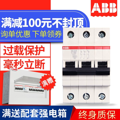 ABB small size circuit breaker 380V three phase air switch 3P100A tripolar air switch switch S283-C100