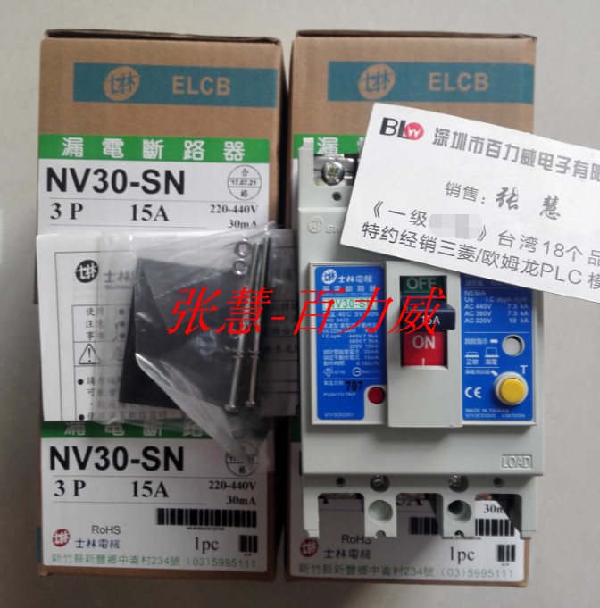 Taiwan Shihlin circuit breaker NV30-SN 3P15A delay New original